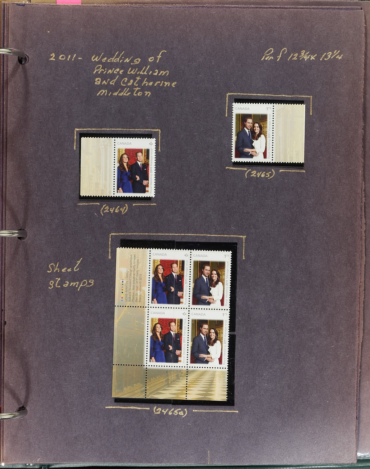 Lovely collection of primarily mint never hinged Canada, from April of 2011, covering Unitrade #s 2461-2467, all in hingeless mounts in over 15 well described pages, housed in a binder. The collection contains mint and used singles (including booklet stamps), matched set of plate blocks (including used sets), along with a few souvenir sheets and sheetlets, booklets, and first day covers. We note some items cataloguing $10.00 and up. Face value alone totals $200.00 (including 83x "P" stamps). A nice lot for all collectors. 2024 Unitrade =