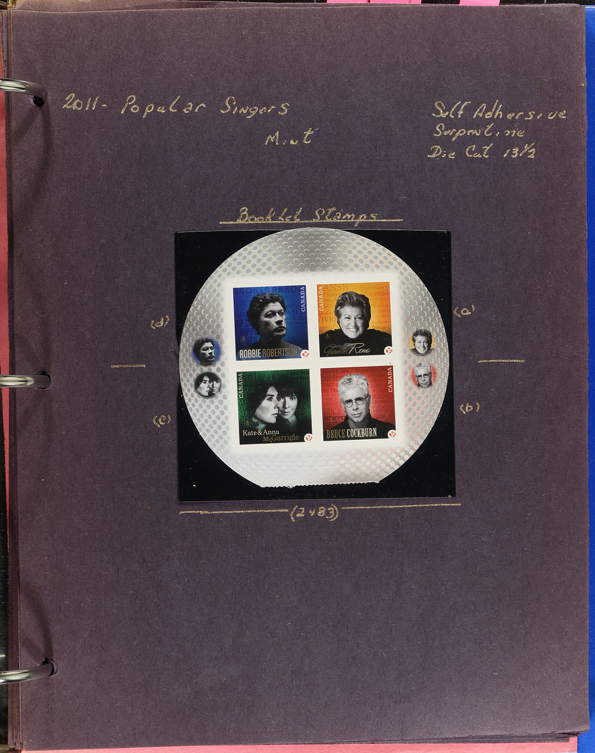 Lovely collection of primarily mint never hinged Canada, from June to October of 2011, covering Unitrade #s 2482b-2489, all in hingeless mounts in over 15 well described pages housed in a binder. The collection contains mint a few souvenir sheets, booklets and panes, and a few first day covers. We note some items cataloguing $10.00 and up. Face value alone totals $164.00 (including 122x "P" stamps). A nice lot for all collectors. 2024 Unitrade =