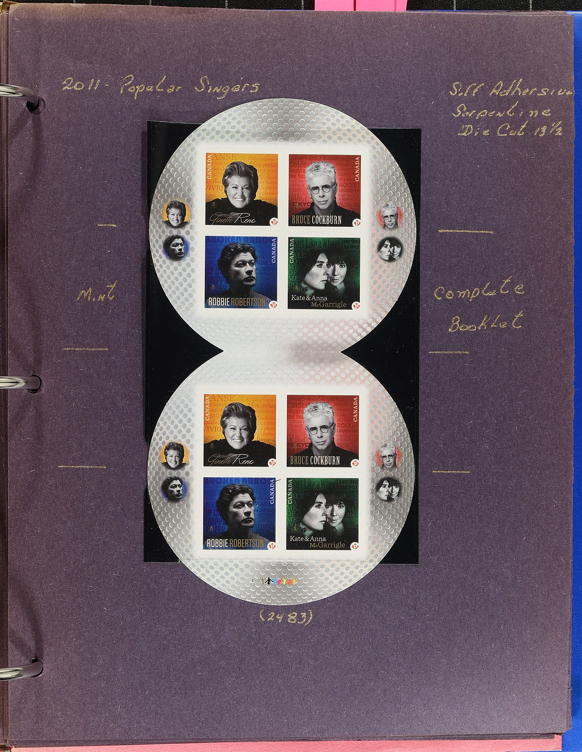 Lovely collection of primarily mint never hinged Canada, from June to October of 2011, covering Unitrade #s 2482b-2489, all in hingeless mounts in over 15 well described pages housed in a binder. The collection contains mint a few souvenir sheets, booklets and panes, and a few first day covers. We note some items cataloguing $10.00 and up. Face value alone totals $164.00 (including 122x "P" stamps). A nice lot for all collectors. 2024 Unitrade =