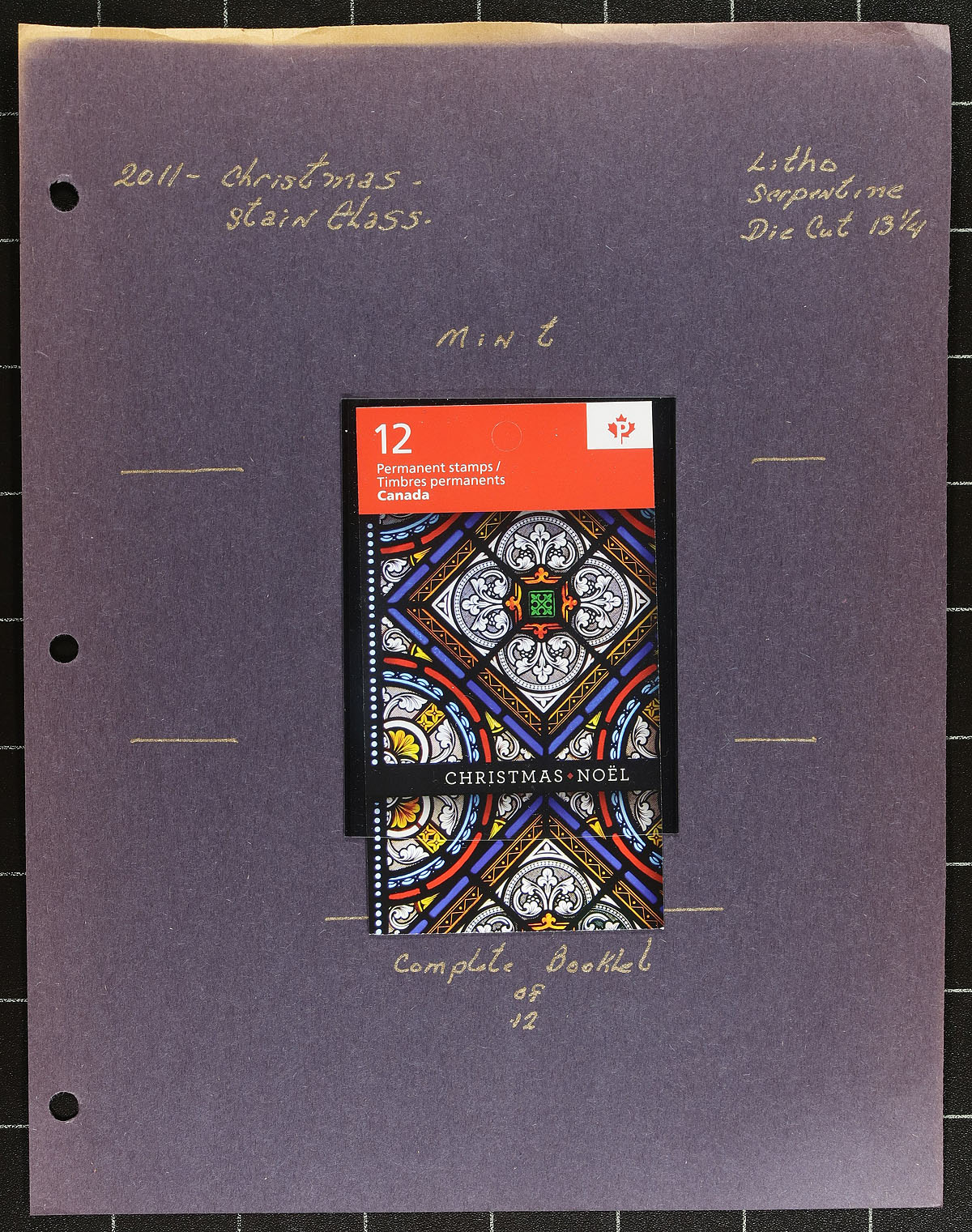 Collection of primarily mint never hinged "Christmas" issues, from November 2011, covering Unitrade #s 2490-2494, all in hingeless mounts in 11 well described pages. The collection contains mint and used singles, along with a few mint and used souvenir sheets, booklets, and first day covers. We note some items cataloguing $10.00 and up. Face value alone totals $108.00 (including 54x "P" stamps). A nice lot for all collectors. 2024 Unitrade =