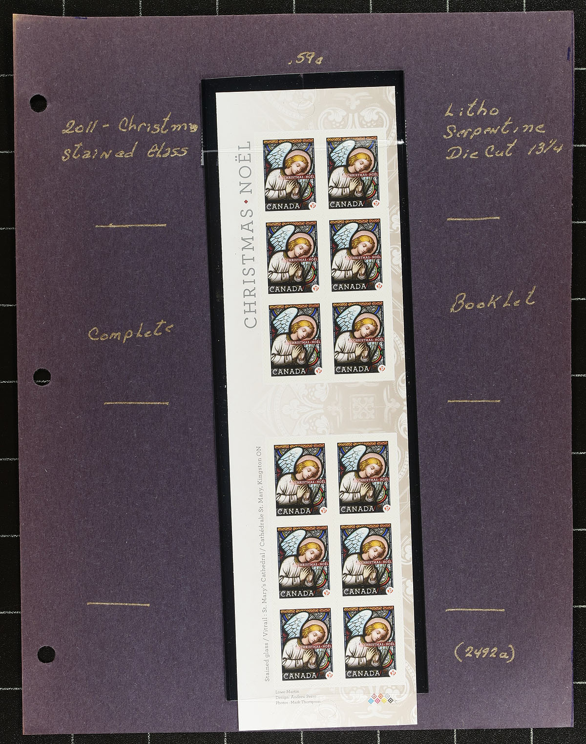 Collection of primarily mint never hinged "Christmas" issues, from November 2011, covering Unitrade #s 2490-2494, all in hingeless mounts in 11 well described pages. The collection contains mint and used singles, along with a few mint and used souvenir sheets, booklets, and first day covers. We note some items cataloguing $10.00 and up. Face value alone totals $108.00 (including 54x "P" stamps). A nice lot for all collectors. 2024 Unitrade =