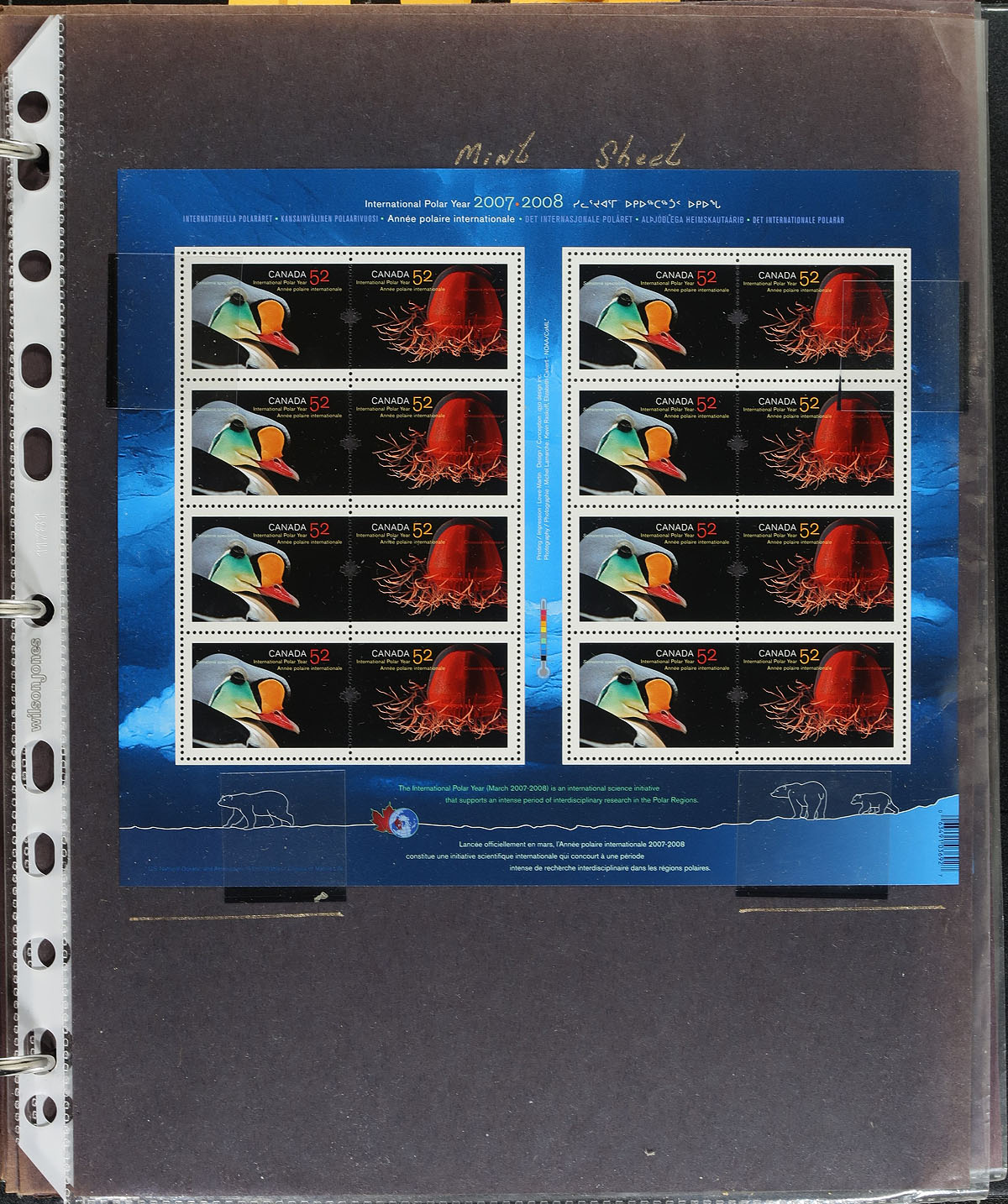 In-depth collection of primarily mint never hinged Canada, from January to June of 2007, covering Unitrade #s 2201-2200, all in hingeless mounts in over 50 well described pages, housed in a thick binder. The collection contains mint and used singles (including booklet stamps), multiples, matched set of plate blocks (including used sets), for some issues, along with a few souvenir sheets and sheetlets (mint and used), booklets (including used booklet panes), and first day covers. We note several match sets cataloguing $10 and up. Face value alone totals $186.00. A nice comprehensive collection that would be difficult to duplicate. 2024 Unitrade =