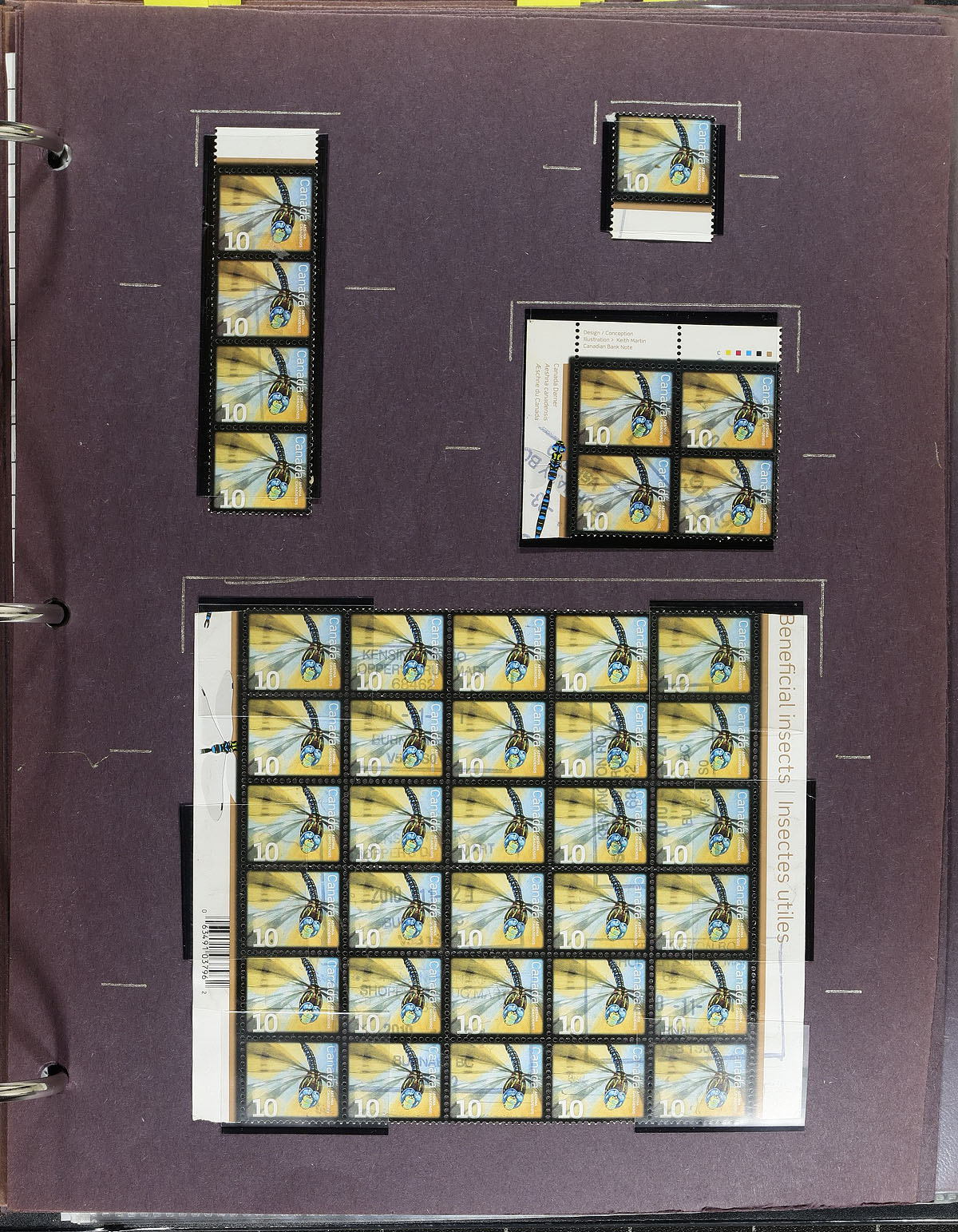 In-depth collection of primarily mint never hinged low value "Beneficial Insects" definitives, October 2007, covering Unitrade #s 2234-2238, all in hingeless mounts in over 50 well described pages, housed in a binder. The collection contains a mint and used singles (including booklet stamps), multiples, matched set of plate blocks (mint and used), for most issues, sheetlets (mint and a few used), and first day covers. Face value alone totals $101.00. A lovely collection of these popular issues. 2024 Unitrade =