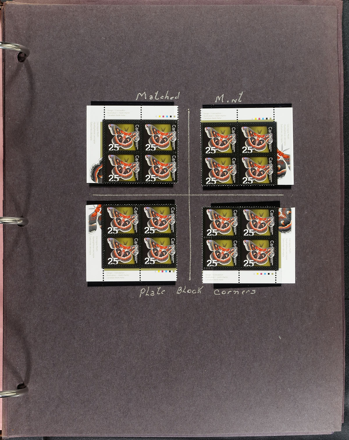 In-depth collection of primarily mint never hinged low value "Beneficial Insects" definitives, October 2007, covering Unitrade #s 2234-2238, all in hingeless mounts in over 50 well described pages, housed in a binder. The collection contains a mint and used singles (including booklet stamps), multiples, matched set of plate blocks (mint and used), for most issues, sheetlets (mint and a few used), and first day covers. Face value alone totals $101.00. A lovely collection of these popular issues. 2024 Unitrade =