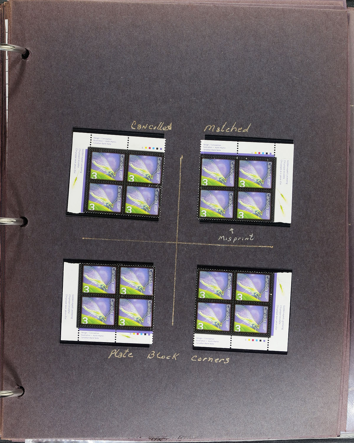 In-depth collection of primarily mint never hinged low value "Beneficial Insects" definitives, October 2007, covering Unitrade #s 2234-2238, all in hingeless mounts in over 50 well described pages, housed in a binder. The collection contains a mint and used singles (including booklet stamps), multiples, matched set of plate blocks (mint and used), for most issues, sheetlets (mint and a few used), and first day covers. Face value alone totals $101.00. A lovely collection of these popular issues. 2024 Unitrade =