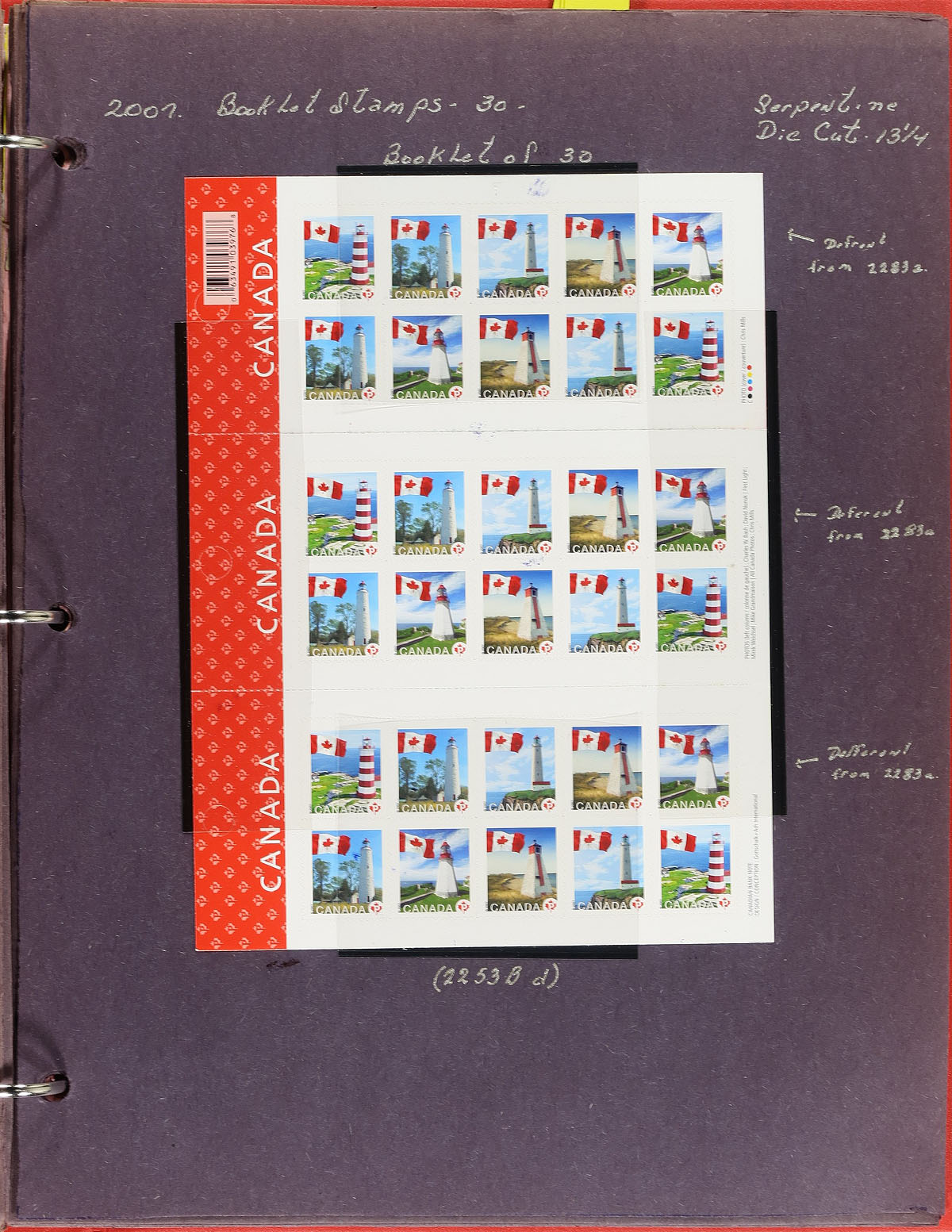 Attractive collection of primarily mint never hinged "Christmas" and "First Class" definitives, November to December of 2007, covering Unitrade #s 2239-2242. 2248-2256, all in hingeless mounts in over 50 well described pages, housed in a binder. The collection contains mint and used singles (including booklet stamps), booklets, mint and used souvenir sheets, coil singles, pairs, and strips of 4, along with roughly 17 first day covers (appearing to have Lower Mainland B.C. postmarks from a variety of outlets). We note some better items cataloguing $15.00 and up. Face value alone totals $198.00 (includes 98x "P" stamps). A nice comprehensive collection that would be difficult to duplicate. 2024 Unitrade =