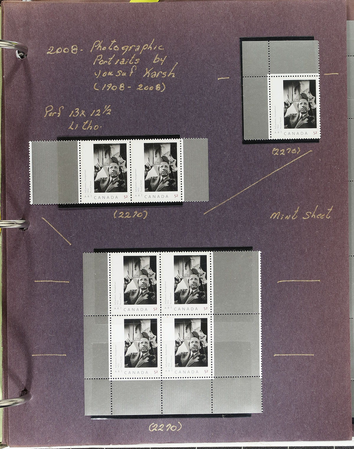 Collection of primarily mint never hinged Canada, from January to May of 2008, covering Unitrade #s 2257-2273, all in hingeless mounts in over 50 well described pages, housed in a thick binder. The collection contains mint and used singles (including booklet stamps), multiples, matched set of plate blocks (including used sets), for some issues, along with a few souvenir sheets and sheetlets (mint and a few used), booklets, and first day covers. We note several match sets cataloguing $10.00 and up. Face value alone totals $181.00. A nice comprehensive collection that would be difficult to duplicate. 2024 Unitrade =