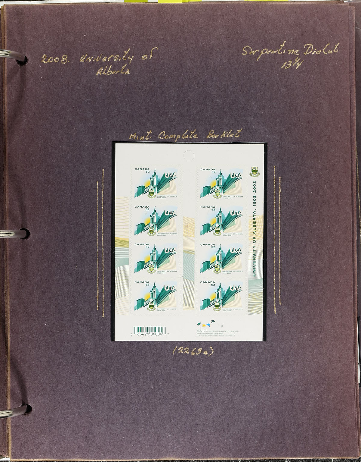 Collection of primarily mint never hinged Canada, from January to May of 2008, covering Unitrade #s 2257-2273, all in hingeless mounts in over 50 well described pages, housed in a thick binder. The collection contains mint and used singles (including booklet stamps), multiples, matched set of plate blocks (including used sets), for some issues, along with a few souvenir sheets and sheetlets (mint and a few used), booklets, and first day covers. We note several match sets cataloguing $10.00 and up. Face value alone totals $181.00. A nice comprehensive collection that would be difficult to duplicate. 2024 Unitrade =