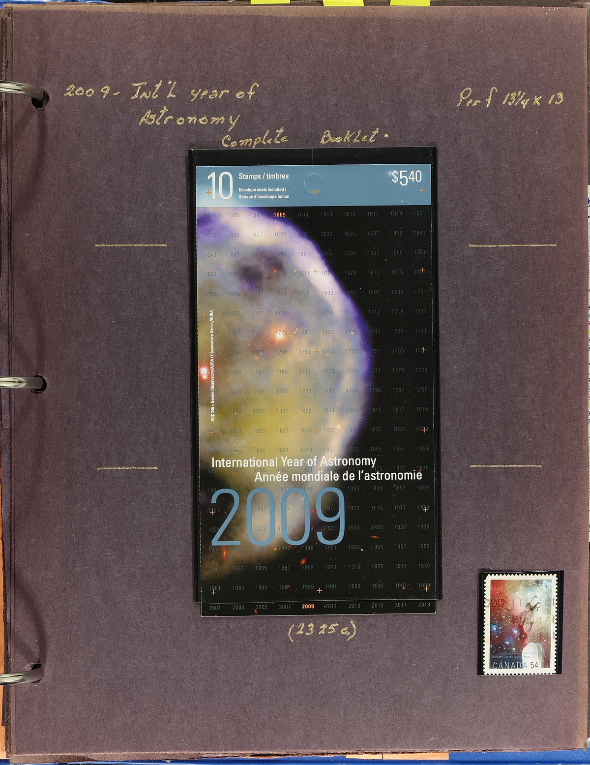 In-depth collection of primarily mint never hinged Canada, from February to May of 2009, covering Unitrade #s 2314-2330, all in hingeless mounts in over 50 well described pages, housed in a binder. The collection contains mint and used singles (including booklet stamps), multiples, matched set of plate blocks (including used sets), for some issues, along with a few souvenir sheets and sheetlets (mint and a few used), booklets, and first day covers. We note several match sets cataloguing $10.00 and up. Face value alone totals $257.00 (includes 84x "P" stamps). A nice comprehensive collection that would be difficult to duplicate. 2024 Unitrade =