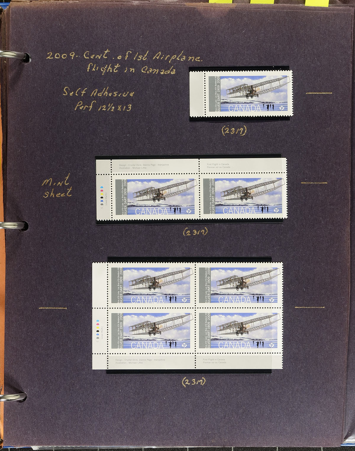 In-depth collection of primarily mint never hinged Canada, from February to May of 2009, covering Unitrade #s 2314-2330, all in hingeless mounts in over 50 well described pages, housed in a binder. The collection contains mint and used singles (including booklet stamps), multiples, matched set of plate blocks (including used sets), for some issues, along with a few souvenir sheets and sheetlets (mint and a few used), booklets, and first day covers. We note several match sets cataloguing $10.00 and up. Face value alone totals $257.00 (includes 84x "P" stamps). A nice comprehensive collection that would be difficult to duplicate. 2024 Unitrade =