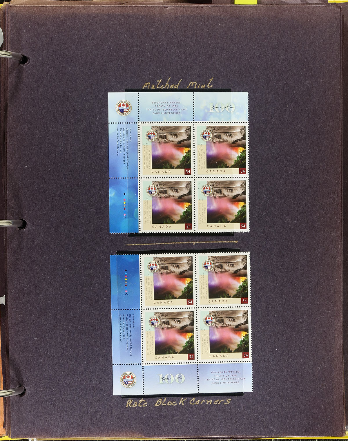 Collection of primarily mint never hinged Canada, from June to October of 2009, covering Unitrade #s 2331-2342, all in hingeless mounts in over 50 well described pages, housed in a thick binder. The collection contains mint and used singles (including booklet stamps), multiples, matched set of plate blocks (including used sets), for some issues, along with a few souvenir sheets and sheetlets (mint and a few used), booklets, and first day covers. We note several match sets cataloguing $10 and up. Face value alone totals $217.00 (includes 56x "P" stamps). A nice comprehensive collection that would be difficult to duplicate. 2024 Unitrade =