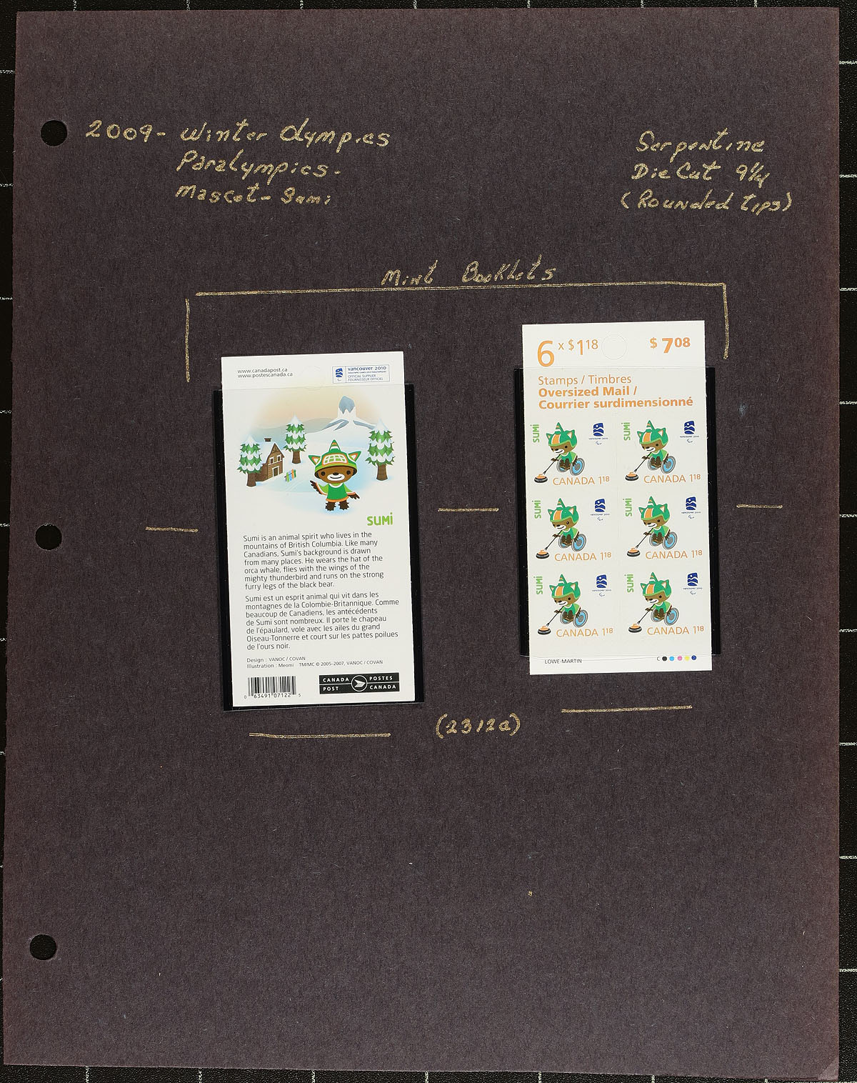 In-depth collection of primarily mint never hinged definitive issues, January 2009, covering Unitrade #s 2298-2313, all in hingeless mounts in roughly 20 well described pages. The collection contains mint and used singles (including booklet stamps), booklets, souvenir sheets, coil singles, pairs, and strips of 4, along with a few first day covers. We note some better items cataloguing $15.00 and up. Face value alone totals $269.00 (includes 146x "P" stamps). A nice comprehensive collection that would be difficult to duplicate. 2024 Unitrade =