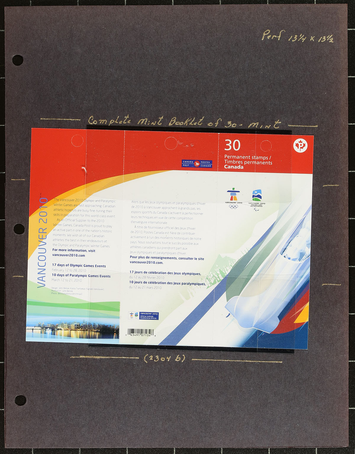 In-depth collection of primarily mint never hinged definitive issues, January 2009, covering Unitrade #s 2298-2313, all in hingeless mounts in roughly 20 well described pages. The collection contains mint and used singles (including booklet stamps), booklets, souvenir sheets, coil singles, pairs, and strips of 4, along with a few first day covers. We note some better items cataloguing $15.00 and up. Face value alone totals $269.00 (includes 146x "P" stamps). A nice comprehensive collection that would be difficult to duplicate. 2024 Unitrade =