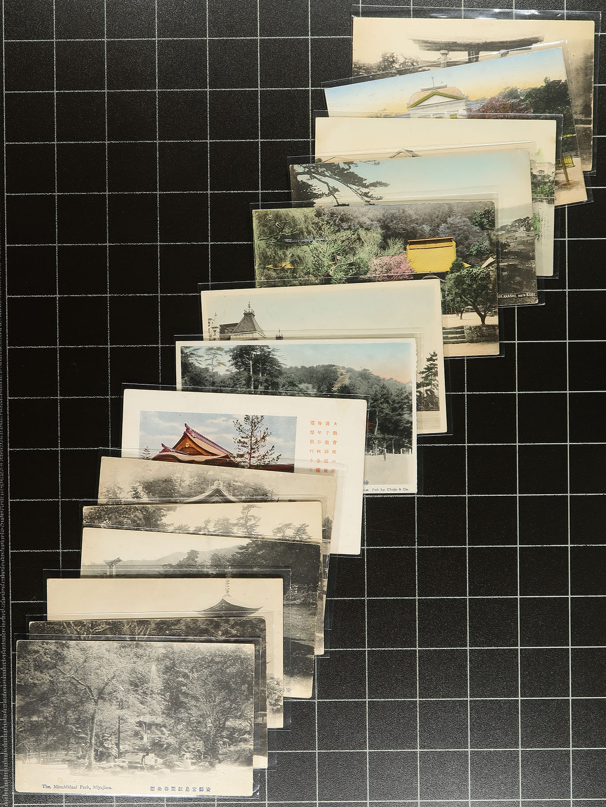 Japan, a treasure trove of vintage postcards, most from the classic era of postcards (1905-1920). A total of 131 cards, with many better including hand-painted, hand-tinted, Japanese Ladies, Shrines, landscape and building views. A great variety of material, collected individually over many years by a local Victoria collector. Mosty unused, but with the odd used as well. Large lots of these cards are seldom seen. Offered as received. Estimate =