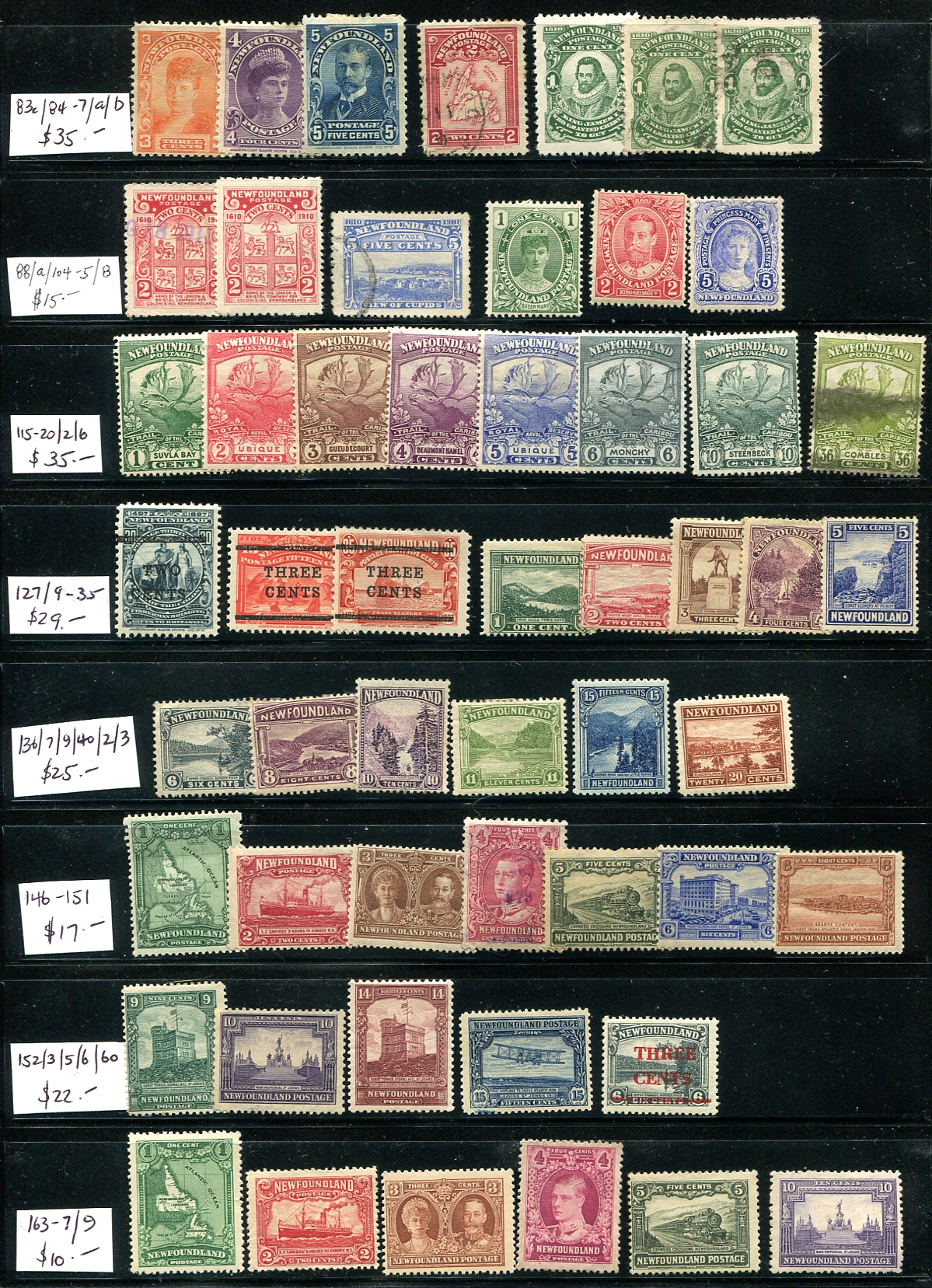 A collectors mint and used assembly of Newfoundland, neatly organized on 2 double-sided (4 pages) stockpages. A total of 200 stamps, lightly duplicated and with the odd small fault noted. The owner states the 2023 Unitrade value on this group exceeds $1250.00! Estimate =