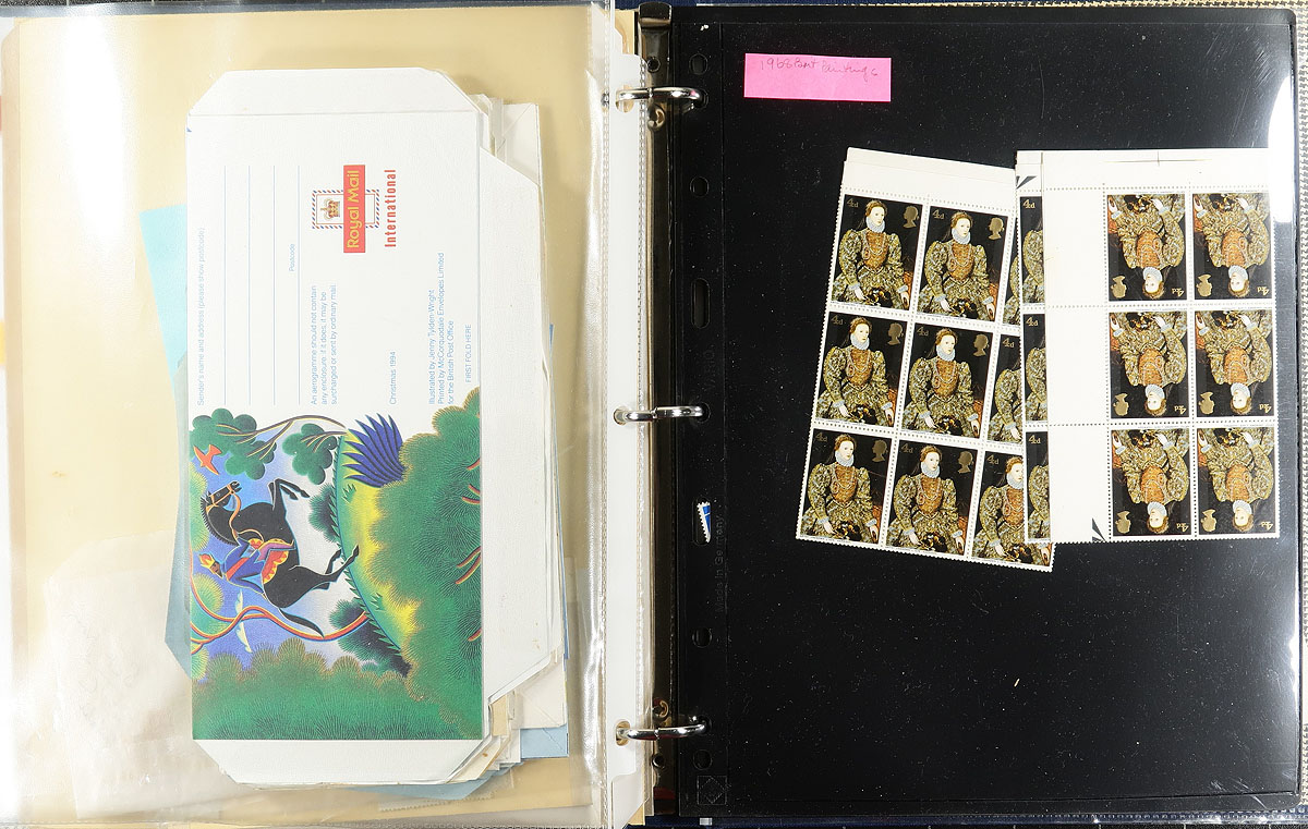 Bankers box of value, including (in no particular order)..1) Stanley Gibbons springback album for GB commemoratives 1924-1971 (1st Decimal issue), partially filled will used stamps, including regular and phosphor issues (a great start to a complete group). 2) Group of 5x stockbooks and 2x binders (with stocksheets) filled to varying extents but containing a mix of largely unsorted mix of QEII era mint and used, including Machins (including Regionals), Wildings, high-value "Castles" and commemorative issues. 3) Small box filled with unchecked QEII Machin issues, largely in baggies just awaiting a more intricate sort. 4) Lastly, a binder containing vario stocksheets containing an assortment of 27 USA flights / first flights (a bit different from the rest of the lot, but adding an interesting secondary aspect). Estimate =