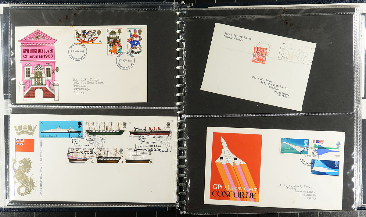 First Day Cover Collection / Accumulation Part 1. Box filled with over 425 First Day Covers, 1967-1996, organized by year into six albums (along with loose material). We noted singles, sets, blocks, souvenir sheets and high-values and regional issues. Overall very clean material, which would have had a tremendous initial cost. Estimate =