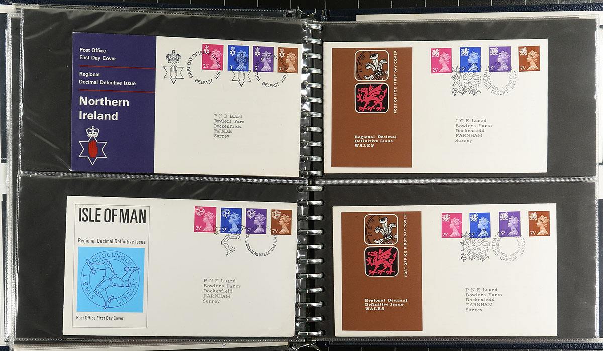 First Day Cover Collection / Accumulation Part 1. Box filled with over 425 First Day Covers, 1967-1996, organized by year into six albums (along with loose material). We noted singles, sets, blocks, souvenir sheets and high-values and regional issues. Overall very clean material, which would have had a tremendous initial cost. Estimate =