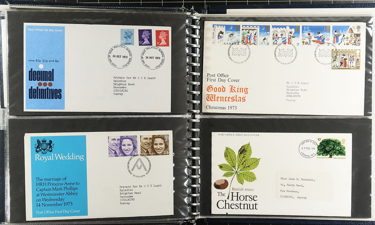 First Day Cover Collection / Accumulation Part 1. Box filled with over 425 First Day Covers, 1967-1996, organized by year into six albums (along with loose material). We noted singles, sets, blocks, souvenir sheets and high-values and regional issues. Overall very clean material, which would have had a tremendous initial cost. Estimate =