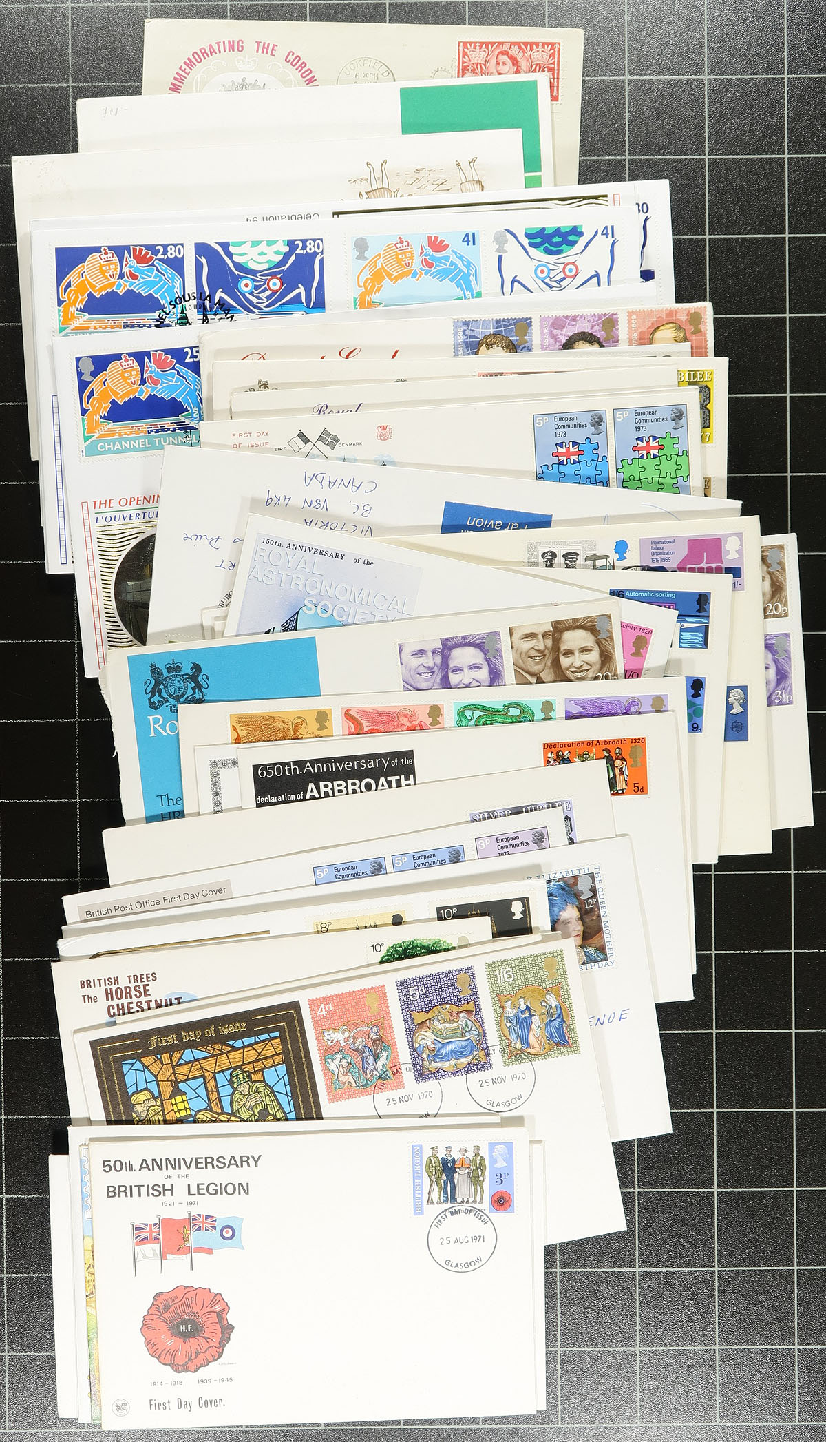 First Day Cover Collection / Accumulation Part 1. Box filled with over 425 First Day Covers, 1967-1996, organized by year into six albums (along with loose material). We noted singles, sets, blocks, souvenir sheets and high-values and regional issues. Overall very clean material, which would have had a tremendous initial cost. Estimate =