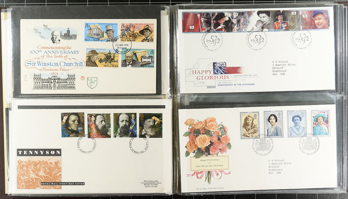 First Day Cover Collection / Accumulation Part 1. Box filled with over 425 First Day Covers, 1967-1996, organized by year into six albums (along with loose material). We noted singles, sets, blocks, souvenir sheets and high-values and regional issues. Overall very clean material, which would have had a tremendous initial cost. Estimate =