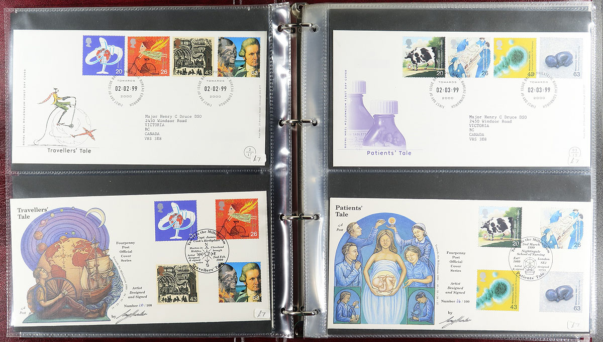 First Day Cover Collection / Accumulation Part 2. Box filled with approximately 400 First Day Covers from the 1960-2000 period, arranged in 7 albums. We noted singles, souvenir sheet and sets, with many attractive topical issues that the British Post Office has been renowned for. Better items (catalogued by 2023 Stanley Gibbons Concise), include #161-164 (catalogue £75.00), #180-181 (catalogue £50.00), #191-193 (two covers, catalogue £90.00) and a few others that catalogue £10-30 each. Estimate =