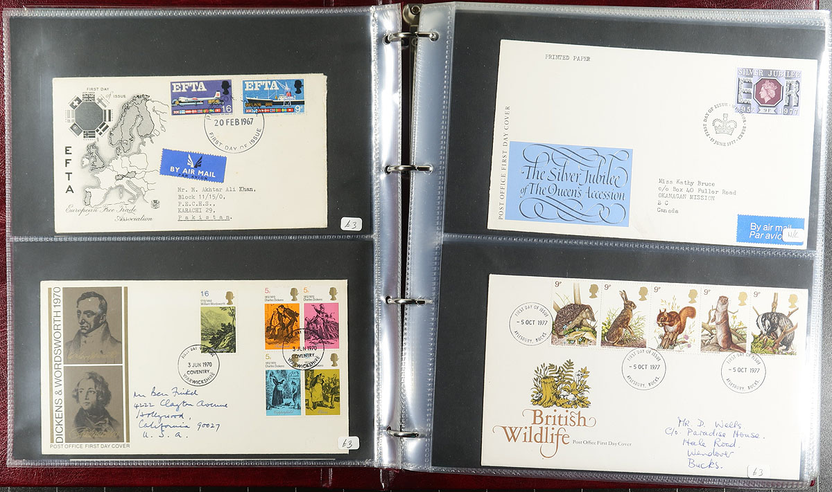 First Day Cover Collection / Accumulation Part 2. Box filled with approximately 400 First Day Covers from the 1960-2000 period, arranged in 7 albums. We noted singles, souvenir sheet and sets, with many attractive topical issues that the British Post Office has been renowned for. Better items (catalogued by 2023 Stanley Gibbons Concise), include #161-164 (catalogue £75.00), #180-181 (catalogue £50.00), #191-193 (two covers, catalogue £90.00) and a few others that catalogue £10-30 each. Estimate =