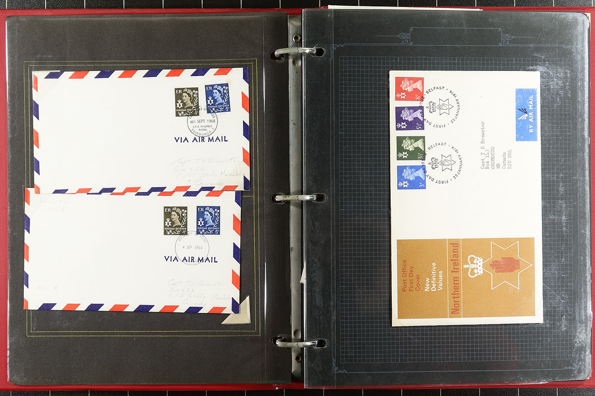 First Day Cover Collection / Accumulation Part 2. Box filled with approximately 400 First Day Covers from the 1960-2000 period, arranged in 7 albums. We noted singles, souvenir sheet and sets, with many attractive topical issues that the British Post Office has been renowned for. Better items (catalogued by 2023 Stanley Gibbons Concise), include #161-164 (catalogue £75.00), #180-181 (catalogue £50.00), #191-193 (two covers, catalogue £90.00) and a few others that catalogue £10-30 each. Estimate =