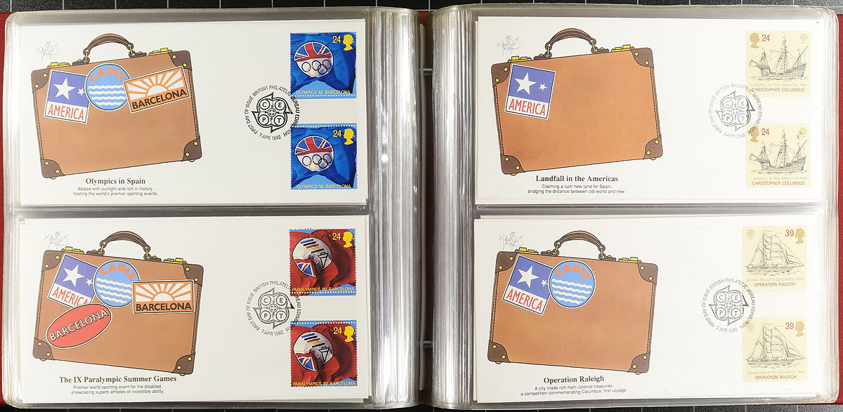 First Day Cover Collection / Accumulation Part 2. Box filled with approximately 400 First Day Covers from the 1960-2000 period, arranged in 7 albums. We noted singles, souvenir sheet and sets, with many attractive topical issues that the British Post Office has been renowned for. Better items (catalogued by 2023 Stanley Gibbons Concise), include #161-164 (catalogue £75.00), #180-181 (catalogue £50.00), #191-193 (two covers, catalogue £90.00) and a few others that catalogue £10-30 each. Estimate =