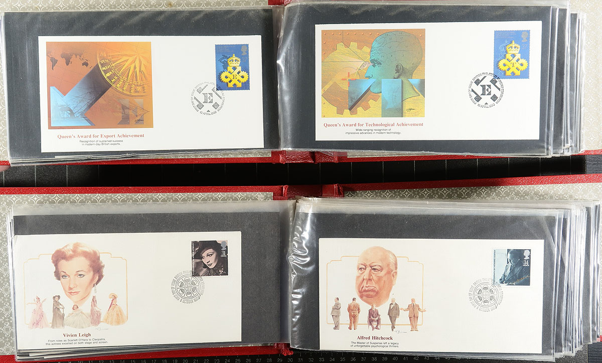 First Day Cover Collection / Accumulation Part 3. A duo of boxes, filled with 14 cover albums that feature over 1200 First Day Covers, from the 1950-1991 period. The majority of these covers are addressed to Canada, with singles, sets, plate blocks and souvenir sheets noted throughout. A few small faults in the earlier material (toning, corner bends), but overall a very enticing run of material. Estimate =