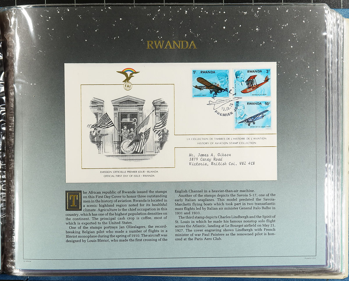 Box of "Curated" Topical collections, including "The History of Aviation" with 50 First Day Covers, each mounted on its own page (circa 1978). Keeping with the transportation theme, there is a pair of pocket albums with Train stamps, circa 1985 (often Caribbean in a pair on a page with an extensive description of the train). Next topic is Olympics sports (a first day collection for the 1980 Moscow and another for the 1988 Summer and Winter games). For animal collectors there is a pair of albums produced for the World Wildlife Fund circa 1980 (mint stamp/set with matching maxi-card and FDC). Finally, there is a thin volume with non-US countries commemorating the United States’ 1976 Bicentennial on FDCs. These sets had outrageous original costs, often targeted at non-collectors or as "investments". They have significant value still when broken up for retail sale. Estimate =