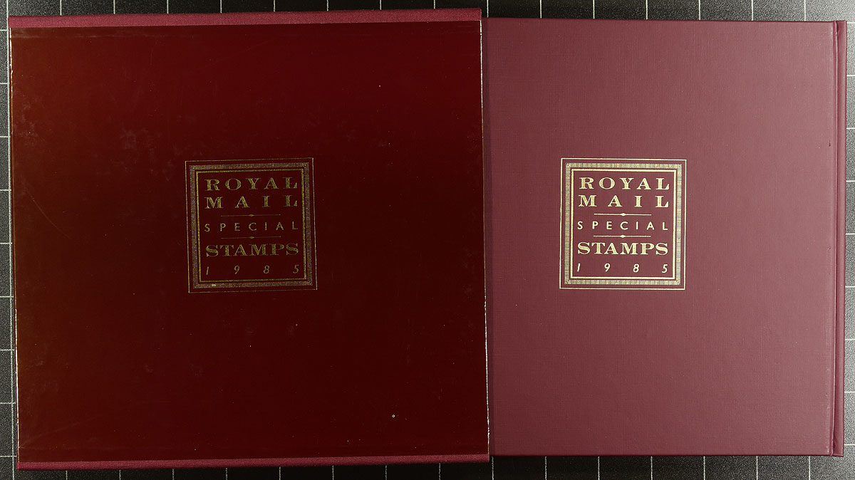 Annual hard-cover annual collection books 1984-1993, 1998 making up a decent run of hardcover Royal Mail limited edition books. A grand total of 11 books, all still containing the full offering of stamps as issued. A wonderful way to acquire the stamps of the period, accompanied by a detailed write-up and illustrations pertaining to the issue (essentially the British equivalent of the Canadian Annual Collection). Estimate =