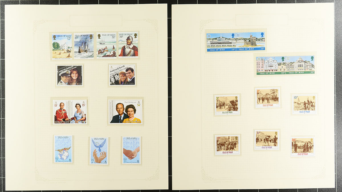 A combined Channel Islands collection of Guernsey (1941-1992, 668 stamps, Scott US$366.90) and Isle of Man (1958-1992, 649 stamps, Scott US$463.55), all neatly on quadrille pages within a blue Rapkin springback album. Mostly mint, with the odd used set present, being mostly Hinged material, arranged in mounts, eventually shifting to Never Hinged stamps by the 1980's. Well laid out and mounted with care by the previous owner. Total 2024 Scott US$830.45 =