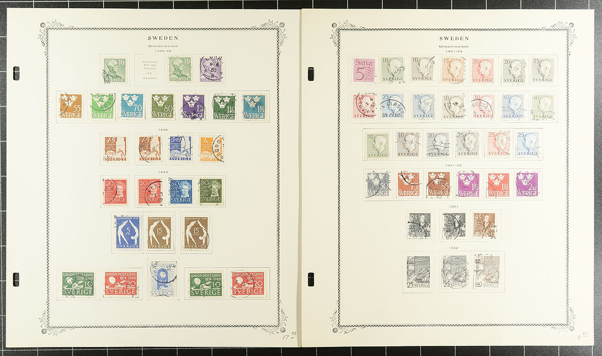 Stunning 1858-1988 used collection of 1637 stamps, neatly arranged on Scott album pages (no binder), tastefully duplicated at times (often to showcase postmarks). Includes regular issues, but also Airmail, Postage Dues, Officials and booklet panes. Of particular note, is 120 examples of #39 selected for the town cancels (you can tell much of this collection was put together with cancel interest in mind). Expect the odd small fault, but overall a very clean group, offered here as received from a local estate. 2025 Scott US$3371.75