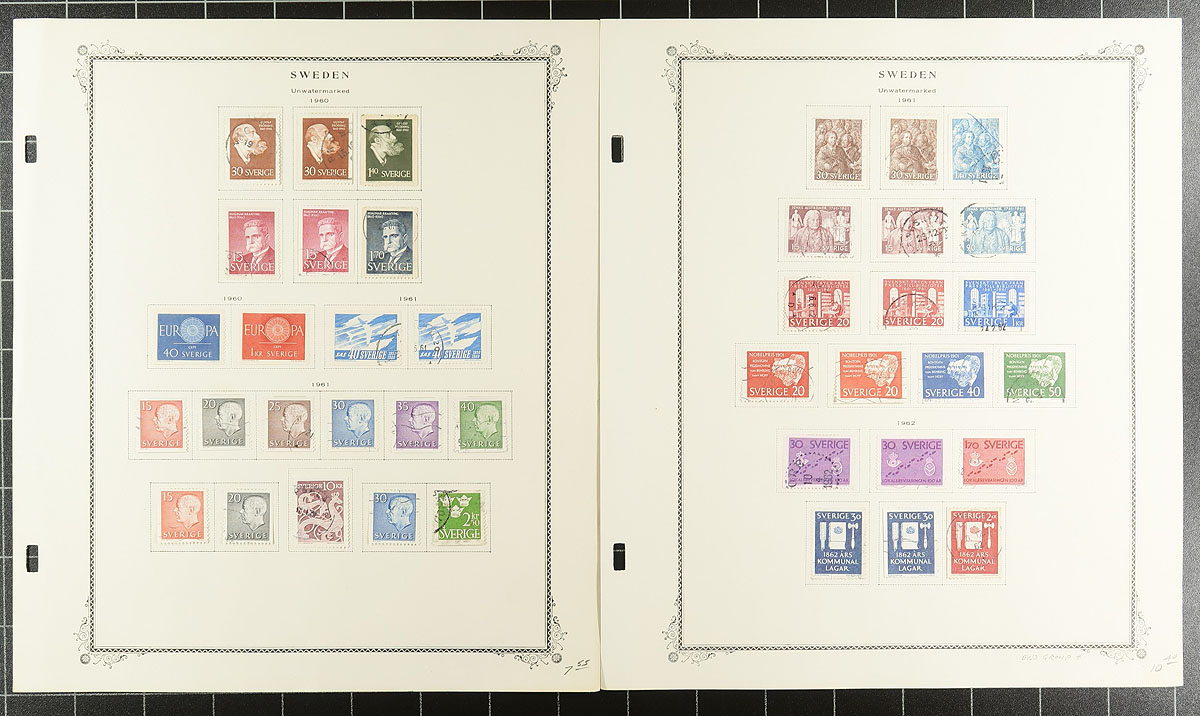 Stunning 1858-1988 used collection of 1637 stamps, neatly arranged on Scott album pages (no binder), tastefully duplicated at times (often to showcase postmarks). Includes regular issues, but also Airmail, Postage Dues, Officials and booklet panes. Of particular note, is 120 examples of #39 selected for the town cancels (you can tell much of this collection was put together with cancel interest in mind). Expect the odd small fault, but overall a very clean group, offered here as received from a local estate. 2025 Scott US$3371.75