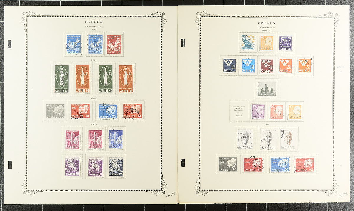 Stunning 1858-1988 used collection of 1637 stamps, neatly arranged on Scott album pages (no binder), tastefully duplicated at times (often to showcase postmarks). Includes regular issues, but also Airmail, Postage Dues, Officials and booklet panes. Of particular note, is 120 examples of #39 selected for the town cancels (you can tell much of this collection was put together with cancel interest in mind). Expect the odd small fault, but overall a very clean group, offered here as received from a local estate. 2025 Scott US$3371.75
