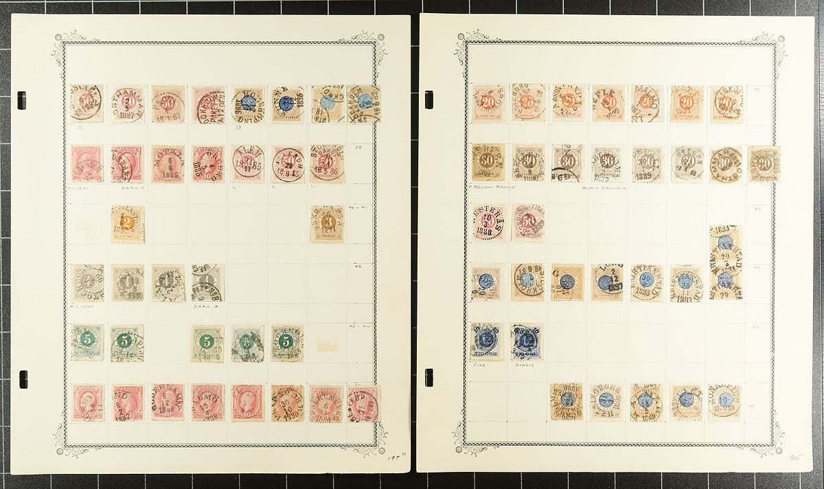 Stunning 1858-1988 used collection of 1637 stamps, neatly arranged on Scott album pages (no binder), tastefully duplicated at times (often to showcase postmarks). Includes regular issues, but also Airmail, Postage Dues, Officials and booklet panes. Of particular note, is 120 examples of #39 selected for the town cancels (you can tell much of this collection was put together with cancel interest in mind). Expect the odd small fault, but overall a very clean group, offered here as received from a local estate. 2025 Scott US$3371.75