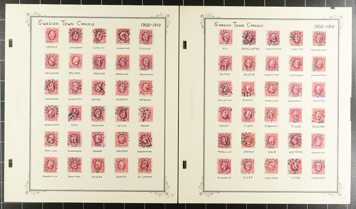 Stunning 1858-1988 used collection of 1637 stamps, neatly arranged on Scott album pages (no binder), tastefully duplicated at times (often to showcase postmarks). Includes regular issues, but also Airmail, Postage Dues, Officials and booklet panes. Of particular note, is 120 examples of #39 selected for the town cancels (you can tell much of this collection was put together with cancel interest in mind). Expect the odd small fault, but overall a very clean group, offered here as received from a local estate. 2025 Scott US$3371.75
