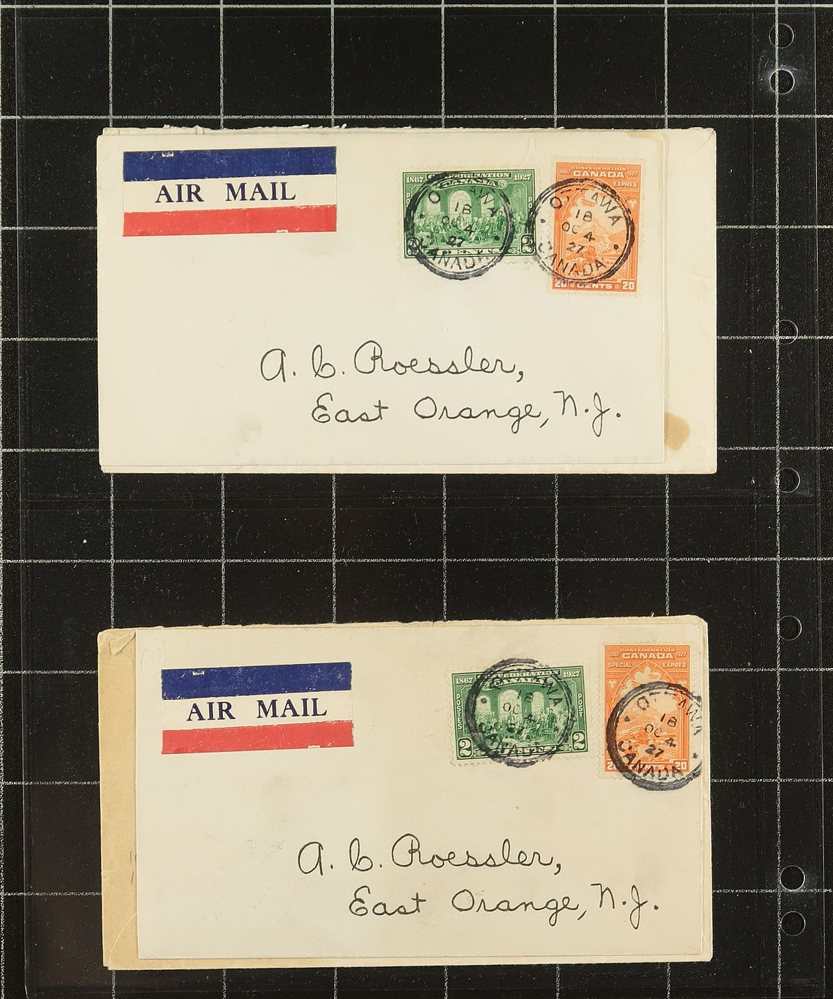 E3 Special Delivery Postal History. A wonderful assortment of 16 covers, all franked with the popular 1927 issued 20c vermilion Special Delivery stamp. One of the most popular issues of the time, showing the methods of mail travel. Includes local use, mixed franking with USA Stamps, airmail, registered, Admirals and postmarks. Take a good look at the scans to appreciate this group of seldom seen covers. Estimate =