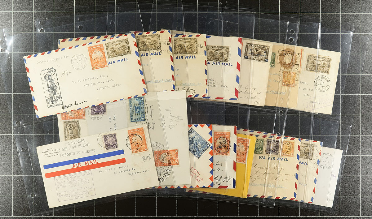 E3 Special Delivery Postal History / First Flight Covers. Attractive offering of 16 covers (plus 3 pieces), all flown on Airmail First Flights and bearing the attractive 1927 issued 20c vermilion Special Delivery. A diverse offering, with flights from across the country, but with some particular focus on Western Canada. Large groups of E3 covers don't become available often! Estimate =