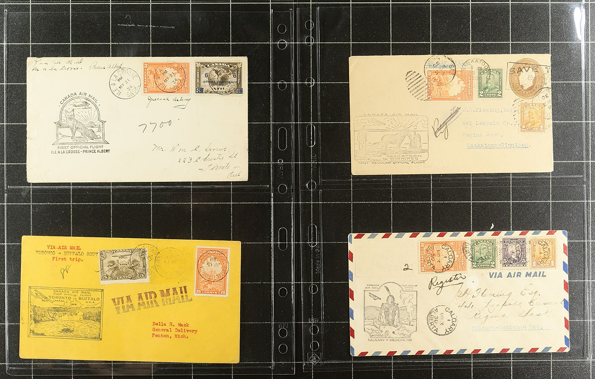 E3 Special Delivery Postal History / First Flight Covers. Attractive offering of 16 covers (plus 3 pieces), all flown on Airmail First Flights and bearing the attractive 1927 issued 20c vermilion Special Delivery. A diverse offering, with flights from across the country, but with some particular focus on Western Canada. Large groups of E3 covers don't become available often! Estimate =