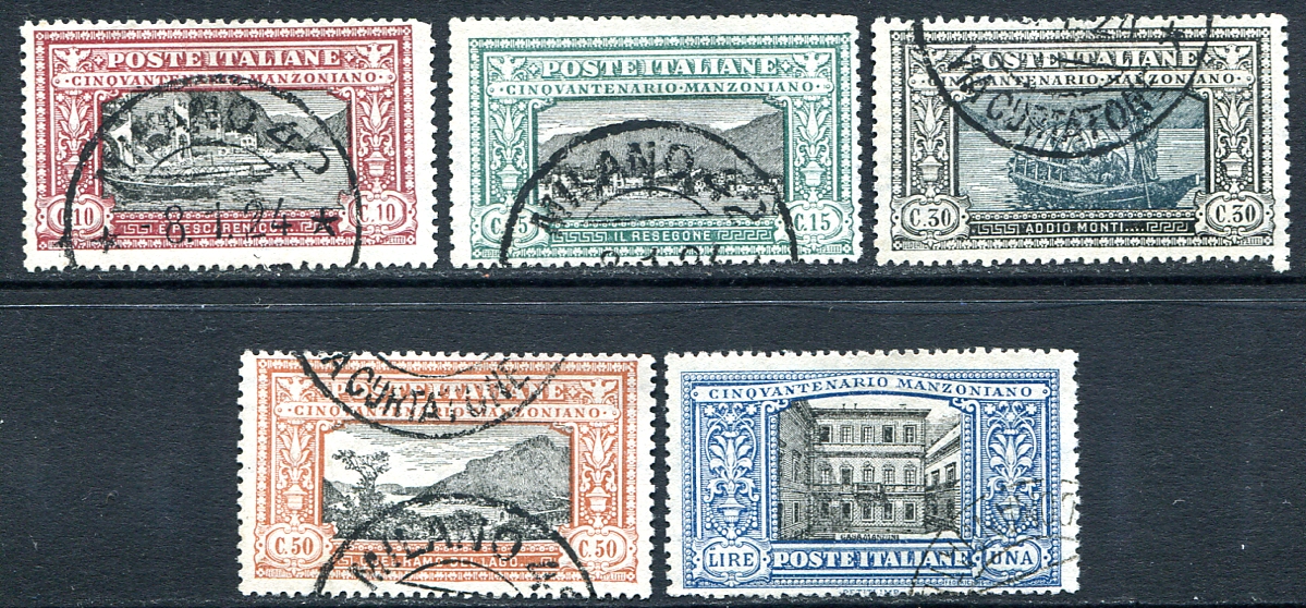 Fresh and VF partial CDS used quintet of five of the six values from the 1923 Manzoni commemorative set. The cancels look OK but sold "as is". 2025 Scott US$1,420.00 =