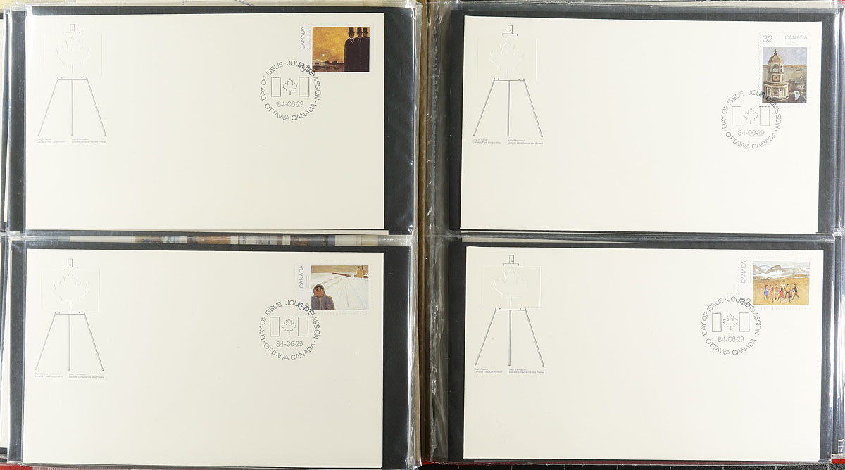 FDC Collection Part 1. An in-depth assembly of Canada Post issued FDC from the 1974-1985 period, largely complete for the period, neatly assembled in 5x Unisafe FDC albums. Each album has been counted for both number of FDC, but also the Face Value of the stamps (keep in mind, the original cost was over the face value!). Total number of FDC is 654, with a total face value of $277.63. Estimate =
