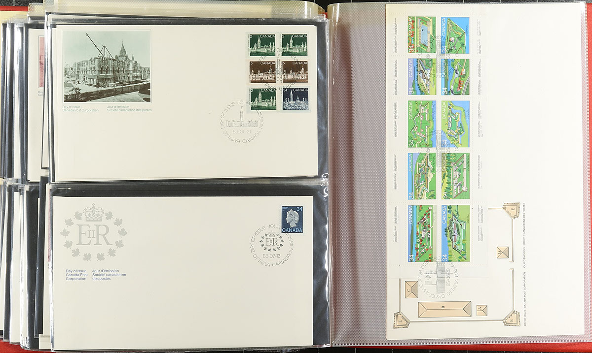 FDC Collection Part 1. An in-depth assembly of Canada Post issued FDC from the 1974-1985 period, largely complete for the period, neatly assembled in 5x Unisafe FDC albums. Each album has been counted for both number of FDC, but also the Face Value of the stamps (keep in mind, the original cost was over the face value!). Total number of FDC is 654, with a total face value of $277.63. Estimate =