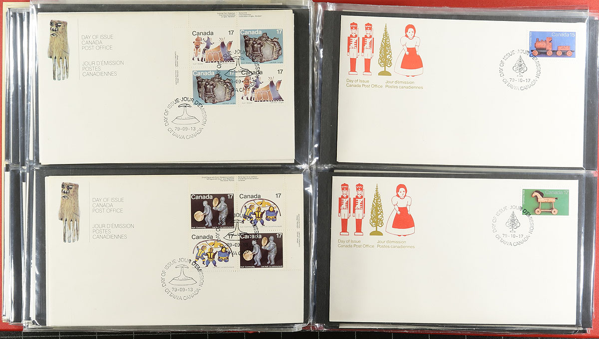 FDC Collection Part 1. An in-depth assembly of Canada Post issued FDC from the 1974-1985 period, largely complete for the period, neatly assembled in 5x Unisafe FDC albums. Each album has been counted for both number of FDC, but also the Face Value of the stamps (keep in mind, the original cost was over the face value!). Total number of FDC is 654, with a total face value of $277.63. Estimate =