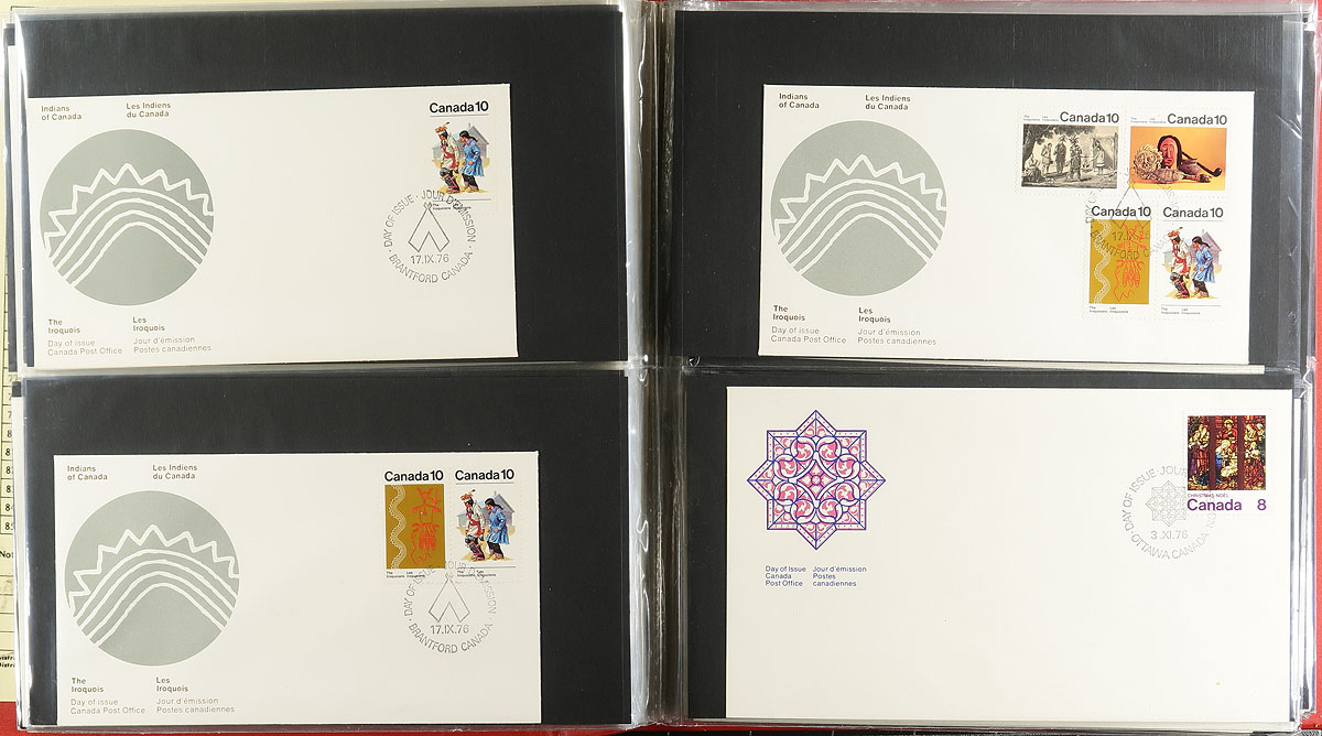 FDC Collection Part 1. An in-depth assembly of Canada Post issued FDC from the 1974-1985 period, largely complete for the period, neatly assembled in 5x Unisafe FDC albums. Each album has been counted for both number of FDC, but also the Face Value of the stamps (keep in mind, the original cost was over the face value!). Total number of FDC is 654, with a total face value of $277.63. Estimate =