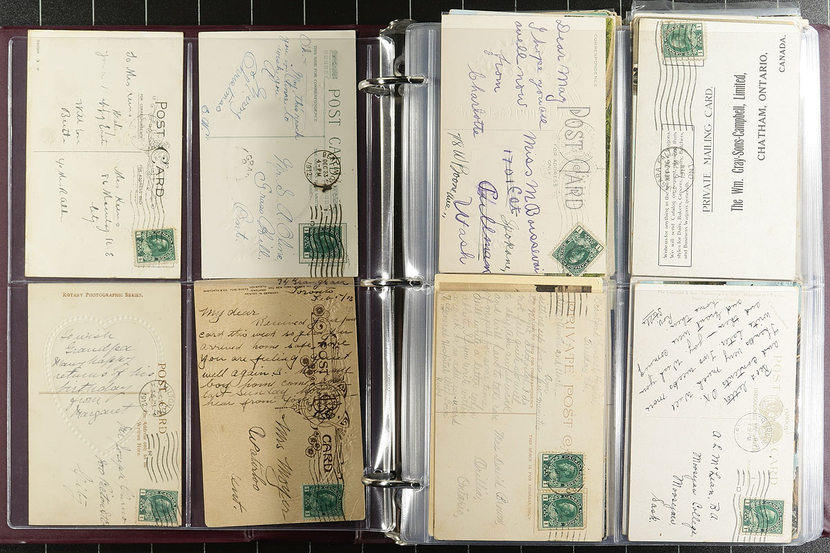 Admiral Postal History / Postcard Accumulation Part 4. A collector's journey of collecting Admiral franked postcards. This portion consists of two full binders, with 534 postcards, all selected for George V Admiral frankings and cancelled with MACHINE postmarks from across the country. A great opportunity for research here, as these machine cancels of the Admiral period are gaining traction in the postal history world, as "finds" can often be hiding in plain sight with new early / late dates. Displayed on clear 4-pocket pages, all pages (except the first) arranged with 8 cards per-page, with the postally used side showing outwards. An excellent opportunity for the postmark or Admiral hound, with 4 large lots offered in this sale. Estimate =