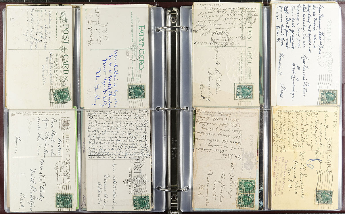 Admiral Postal History / Postcard Accumulation Part 4. A collector's journey of collecting Admiral franked postcards. This portion consists of two full binders, with 534 postcards, all selected for George V Admiral frankings and cancelled with MACHINE postmarks from across the country. A great opportunity for research here, as these machine cancels of the Admiral period are gaining traction in the postal history world, as "finds" can often be hiding in plain sight with new early / late dates. Displayed on clear 4-pocket pages, all pages (except the first) arranged with 8 cards per-page, with the postally used side showing outwards. An excellent opportunity for the postmark or Admiral hound, with 4 large lots offered in this sale. Estimate =
