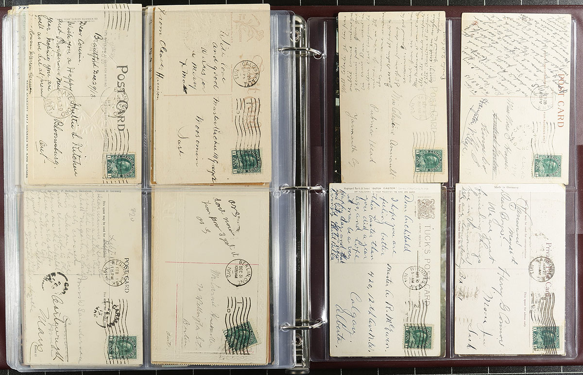 Admiral Postal History / Postcard Accumulation Part 4. A collector's journey of collecting Admiral franked postcards. This portion consists of two full binders, with 534 postcards, all selected for George V Admiral frankings and cancelled with MACHINE postmarks from across the country. A great opportunity for research here, as these machine cancels of the Admiral period are gaining traction in the postal history world, as "finds" can often be hiding in plain sight with new early / late dates. Displayed on clear 4-pocket pages, all pages (except the first) arranged with 8 cards per-page, with the postally used side showing outwards. An excellent opportunity for the postmark or Admiral hound, with 4 large lots offered in this sale. Estimate =