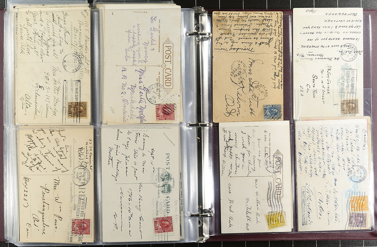 Admiral Postal History / Postcard Accumulation Part 4. A collector's journey of collecting Admiral franked postcards. This portion consists of two full binders, with 534 postcards, all selected for George V Admiral frankings and cancelled with MACHINE postmarks from across the country. A great opportunity for research here, as these machine cancels of the Admiral period are gaining traction in the postal history world, as "finds" can often be hiding in plain sight with new early / late dates. Displayed on clear 4-pocket pages, all pages (except the first) arranged with 8 cards per-page, with the postally used side showing outwards. An excellent opportunity for the postmark or Admiral hound, with 4 large lots offered in this sale. Estimate =